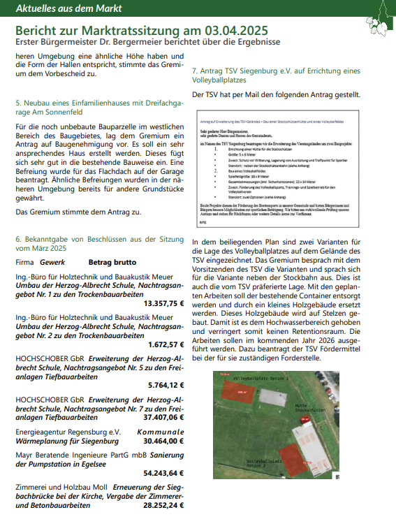 Schulturnhalle Siegenburg (Winter) Schulsportplatz Siegenburg (Sommer)